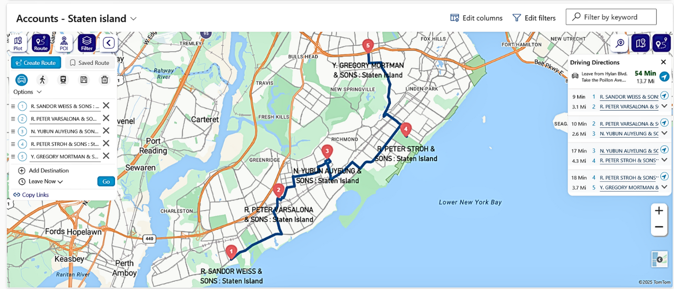 For field reps, time on the road can be a productivity killer. Maplytics offers route optimization within Dynamics 365, helping reps spend less time driving and more time selling. One client reported saving 16 hours per day in travel time thanks to optimized routes. The tool considers real-world factors like traffic, detours, and meeting priorities while also supporting auto-scheduling for pre-planned routes.