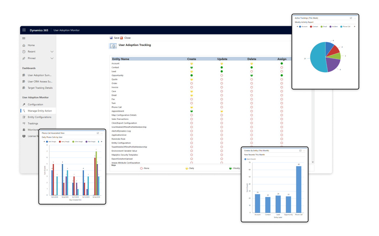 At its core, User Adoption Monitor is an advanced tool that watches how your team uses Microsoft Dynamics 365 CRM. It doesn’t spy on private details or monitor what people type; instead, it tracks actions and behavior to answer questions such as: