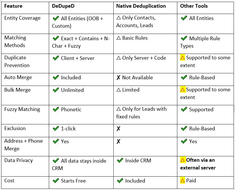 But DeDupeD stands out as the most complete, scalable, privacy-safe, automated dedupe solution for Dynamics 365 CRM teams in 2025.