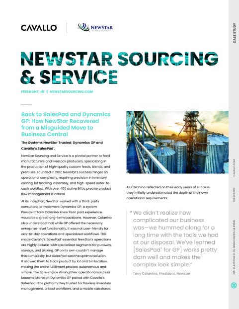 When an expensive, year-long migration to the cloud left NewStar Sourcing with crippled workflows and mounting inefficiencies, they faced a critical crossroads. Despite the industry push toward Business Central, the feed manufacturer discovered that the "modern" solution couldn't match the operational precision of their original setup. By abandoning the failed implementation and returning to the proven power of Microsoft Dynamics GP paired with Cavallo’s SalesPad®, NewStar reclaimed their high-speed fulfillment and inventory accuracy. This case study explores why "moving forward" isn't always progress and how the right partnership restored a six-figure investment into a scalable success story.