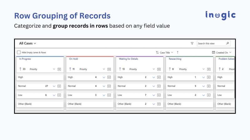 Turn any Dynamics 365 CRM view into a visual Kanban board with lanes and rows representing stages or categories. Gain a clear overview of tasks and records for faster management and decision-making.