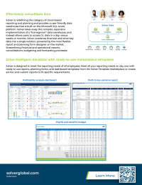 Solver combines financial and other key data into a single tool, powered by the most flexible report and planning form designer on the market. Organizations use this solution to automate and streamline financial and operational reports, consolidations, and budgeting and forecasting processes. Solver empowers users with complete insight that drives intelligent decisions and competitive advantages.