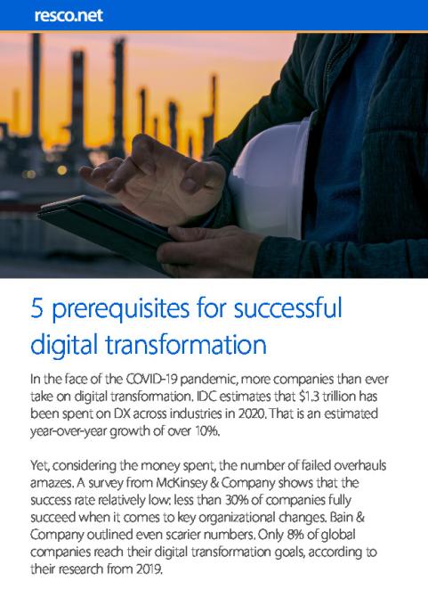 Companies around the world deploy various strategies and processes to incorporate useful technology into their operation. There is no “one size fits all” solution. However, there are several key reasons why transformations often fail. From lack of commitment to a basic misunderstanding of what “digital” is. So, is there a way how to maximize your chances for successful digital transformation? Read in this free e-book.