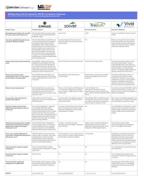 Comparative Chart: 4 Top BI & Reporting Solutions for Dynamics 365 BC/NAV